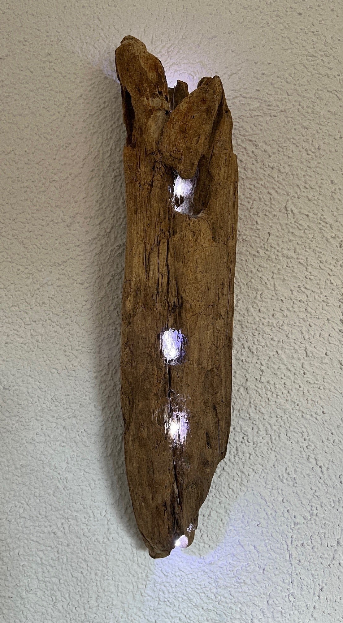 Ein tolles Schwemmholz mit intergriertem Ledlicht, batteriebetrieben, Knopfzellenbatterie kann ausgetauscht werden, mit Aufhängevorrichtung