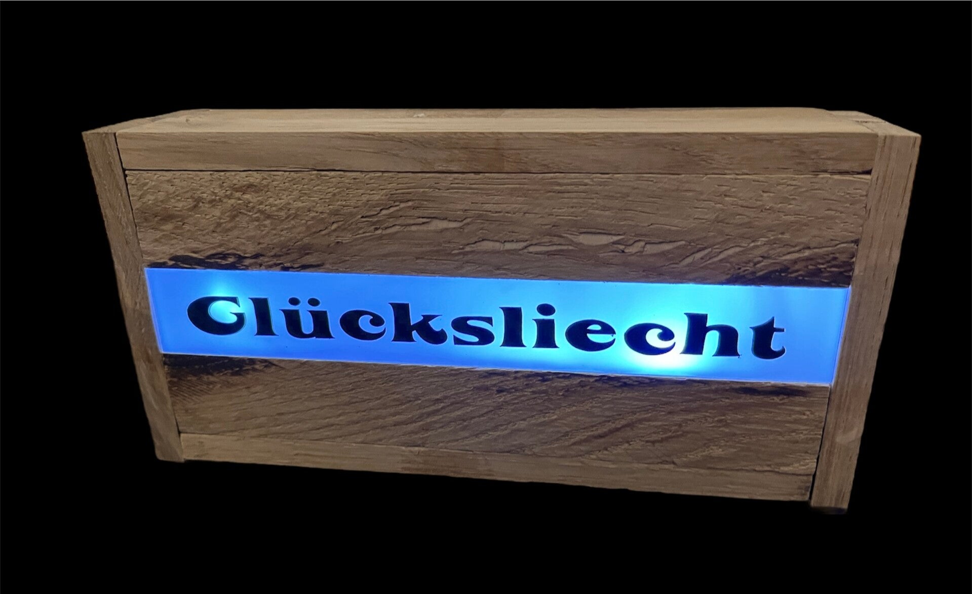 Lichterbox aus Eichen-Holz mit LED-Innenbeleuchtung weiss (wirkt auf Foto bläulich), batteriebetrieben